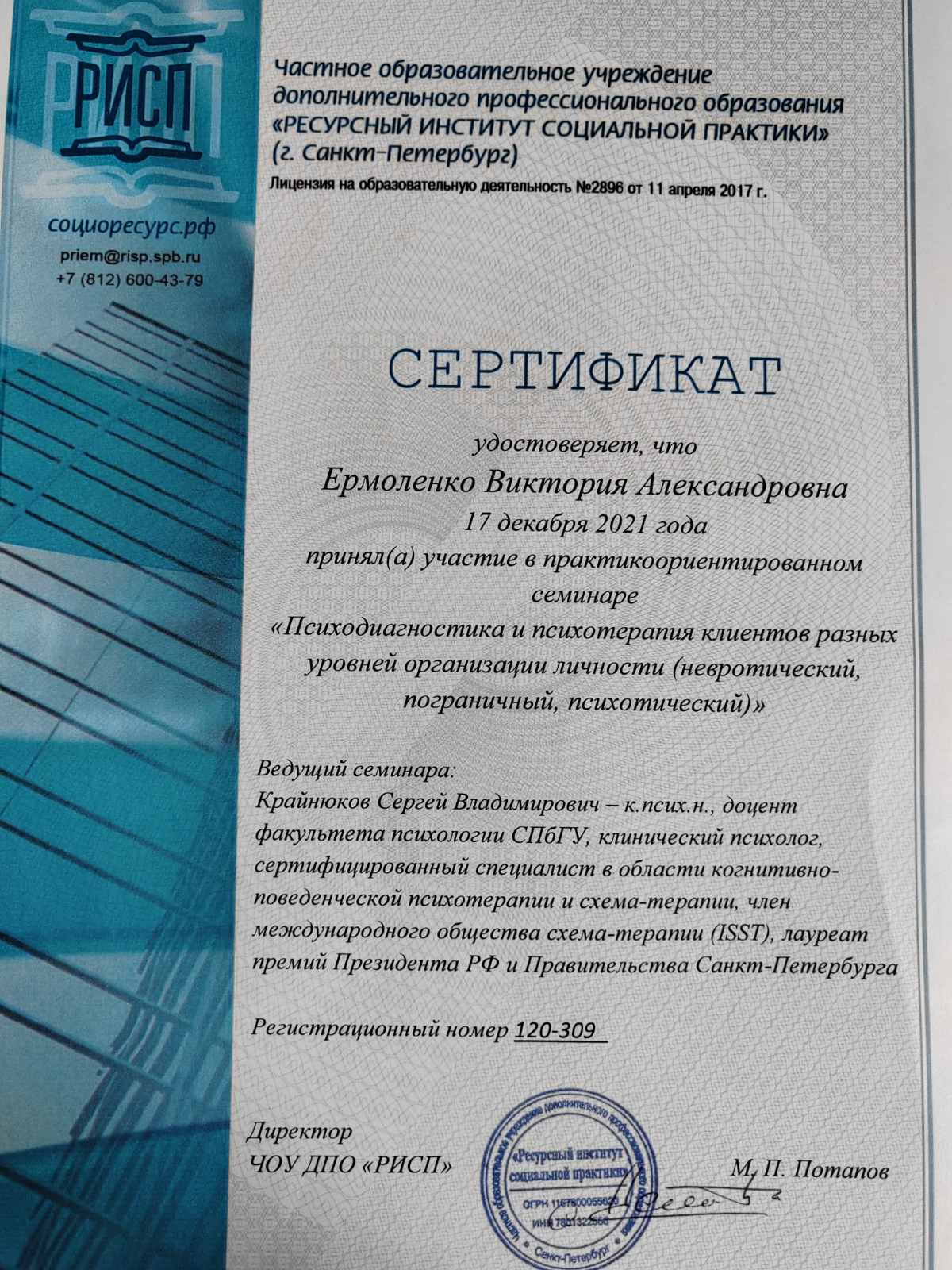 Дипломы и сертификаты