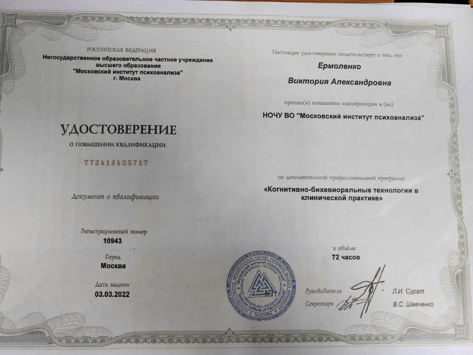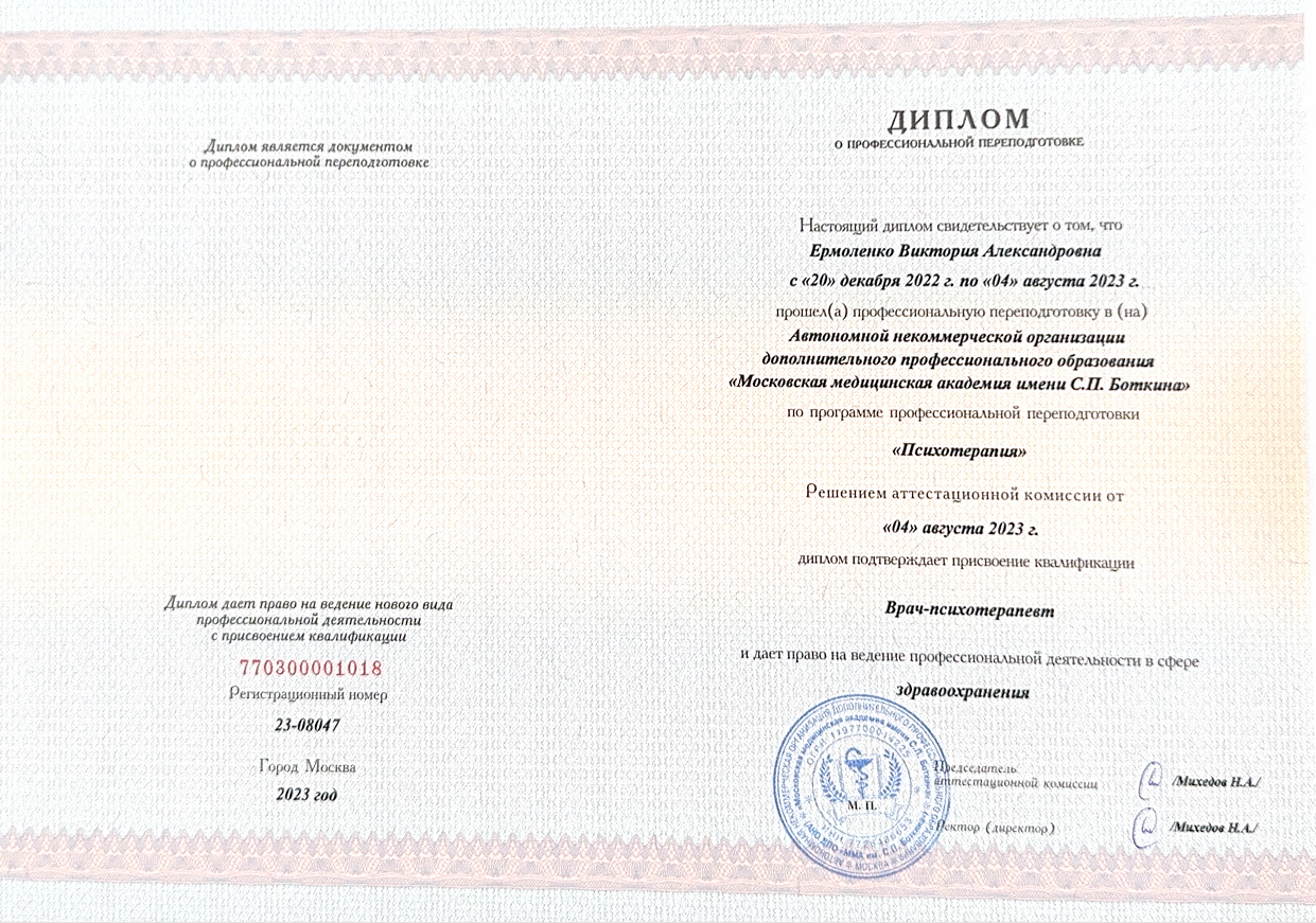 Здравствуйте! Меня зовут Виктория, я с психотерапевт 13-летним опытом работы.
