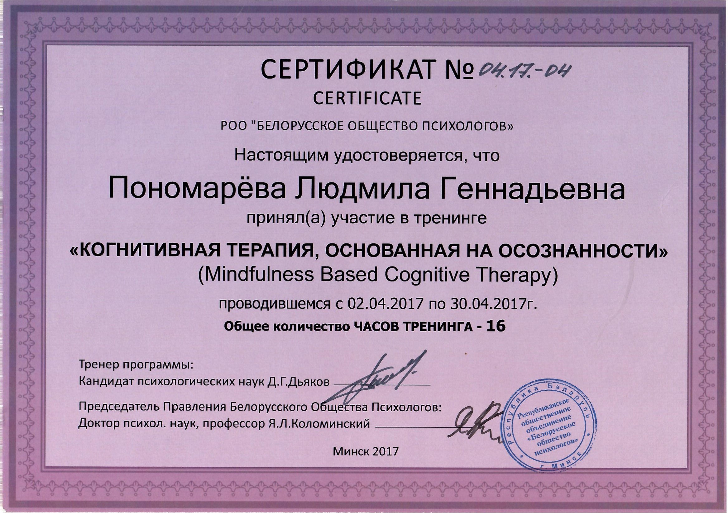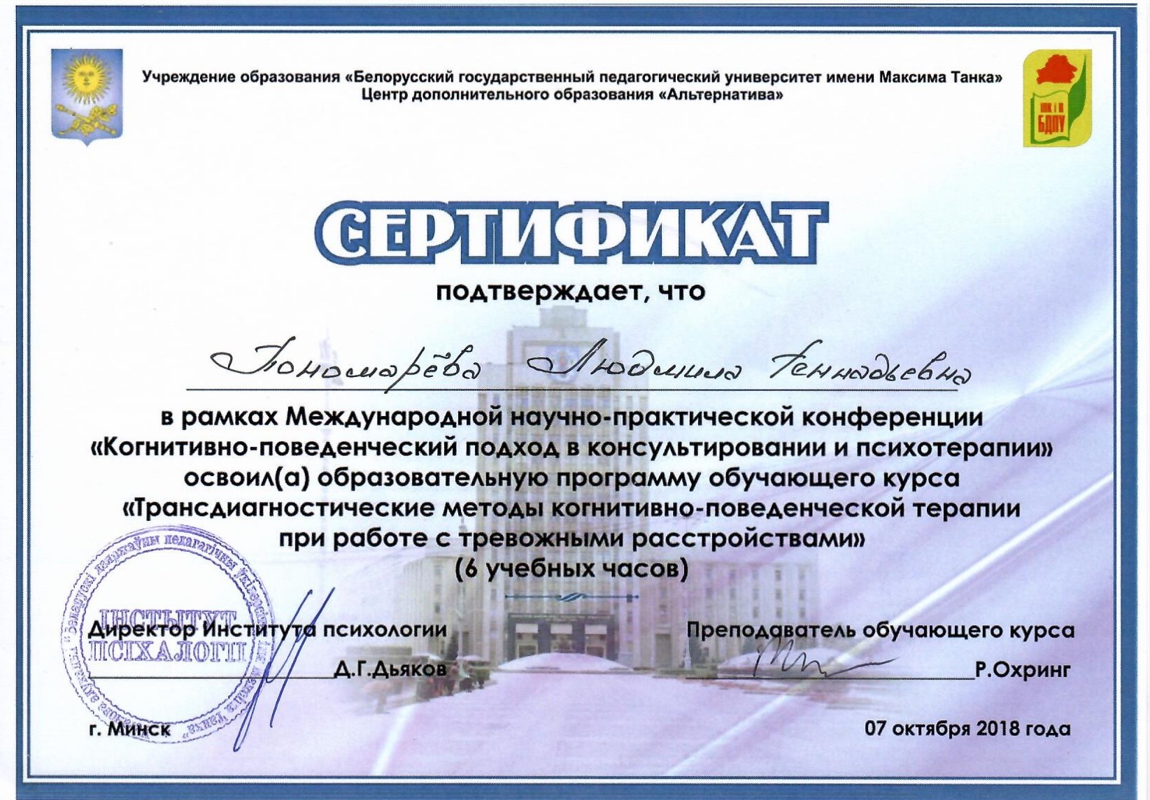 Дипломы и сертификаты