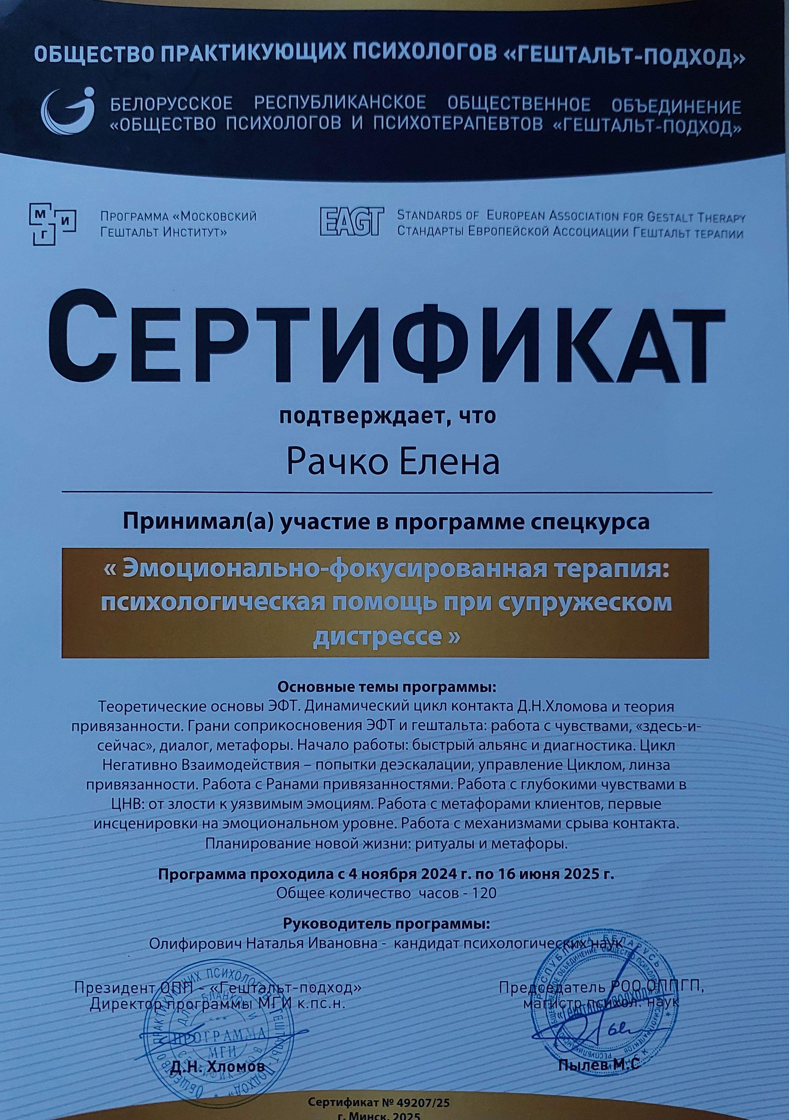 Елена, большое спасибо за проделанную работу! Прошло уже два месяца и я понимаю, что значит жить свою жизнь и дышать полной грудью! Больше меня ничего не беспокоит, с мужем всё отлично, на работе тоже наладилось. Горжусь собой и благодарна за проделанную вами работу!