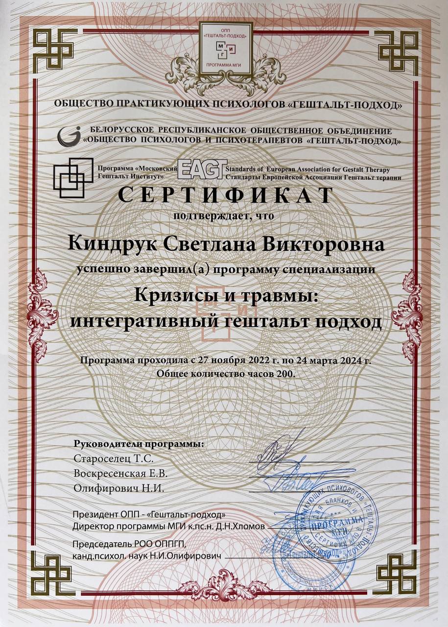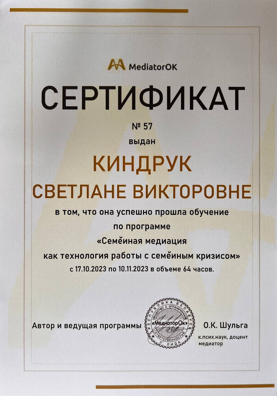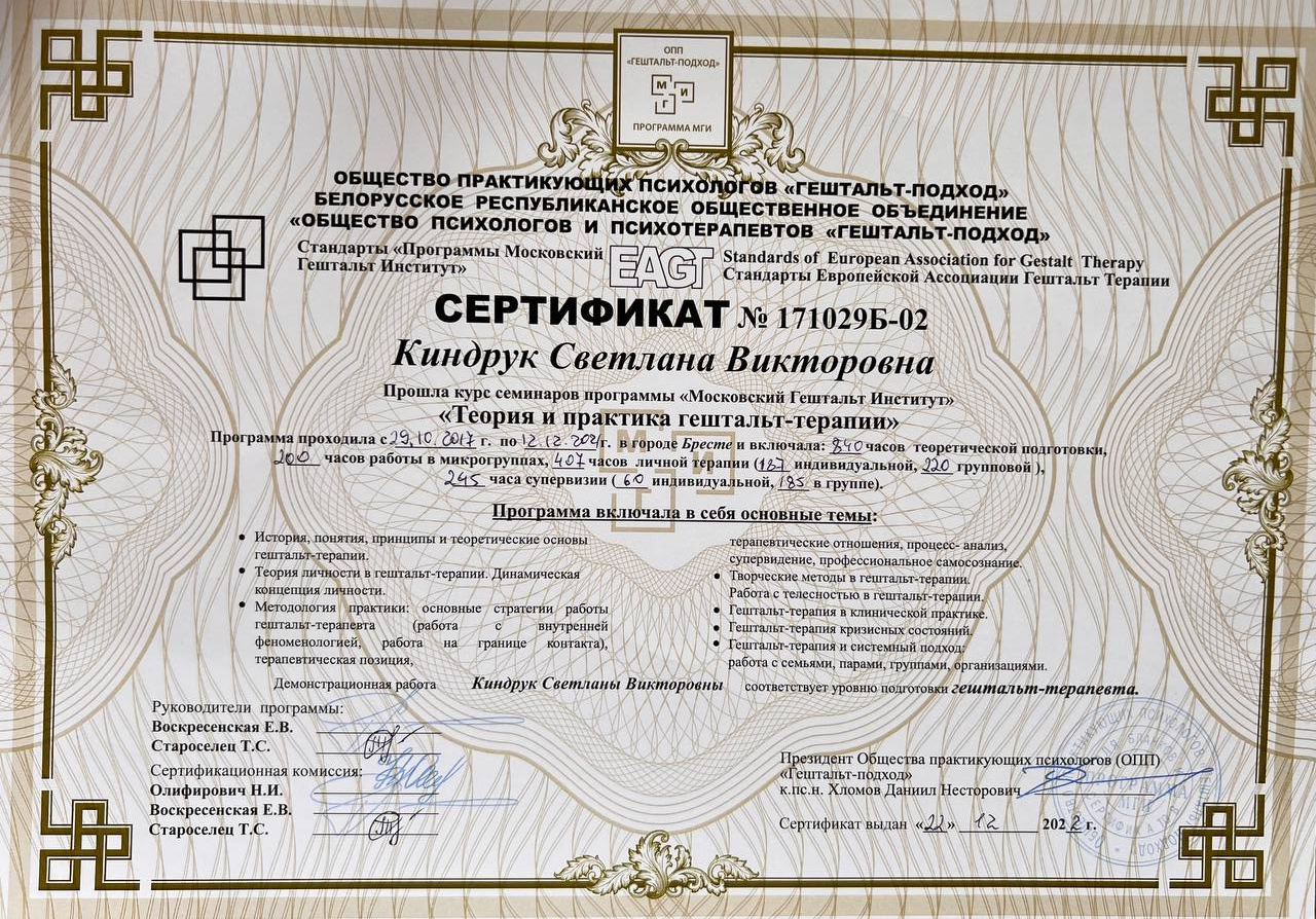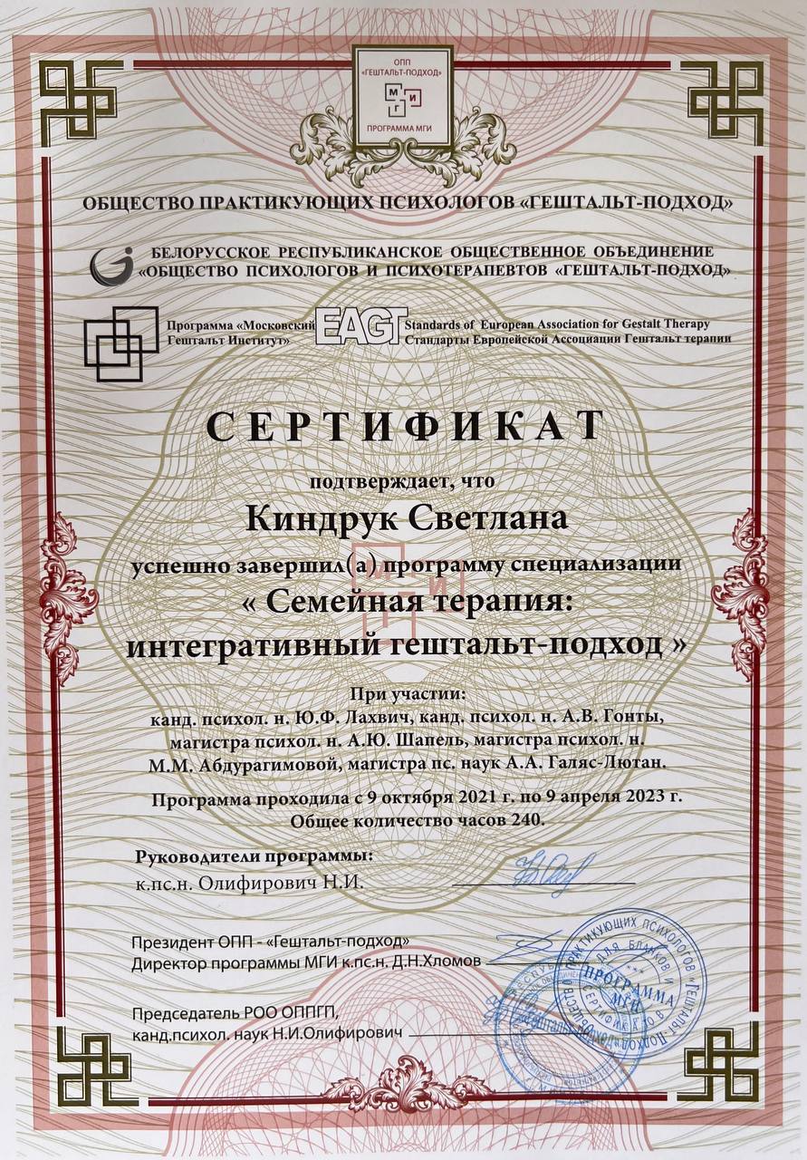 В своей работе использую МАК, арт-техники, КПТ-техники, опираюсь на системную семейную терапию.