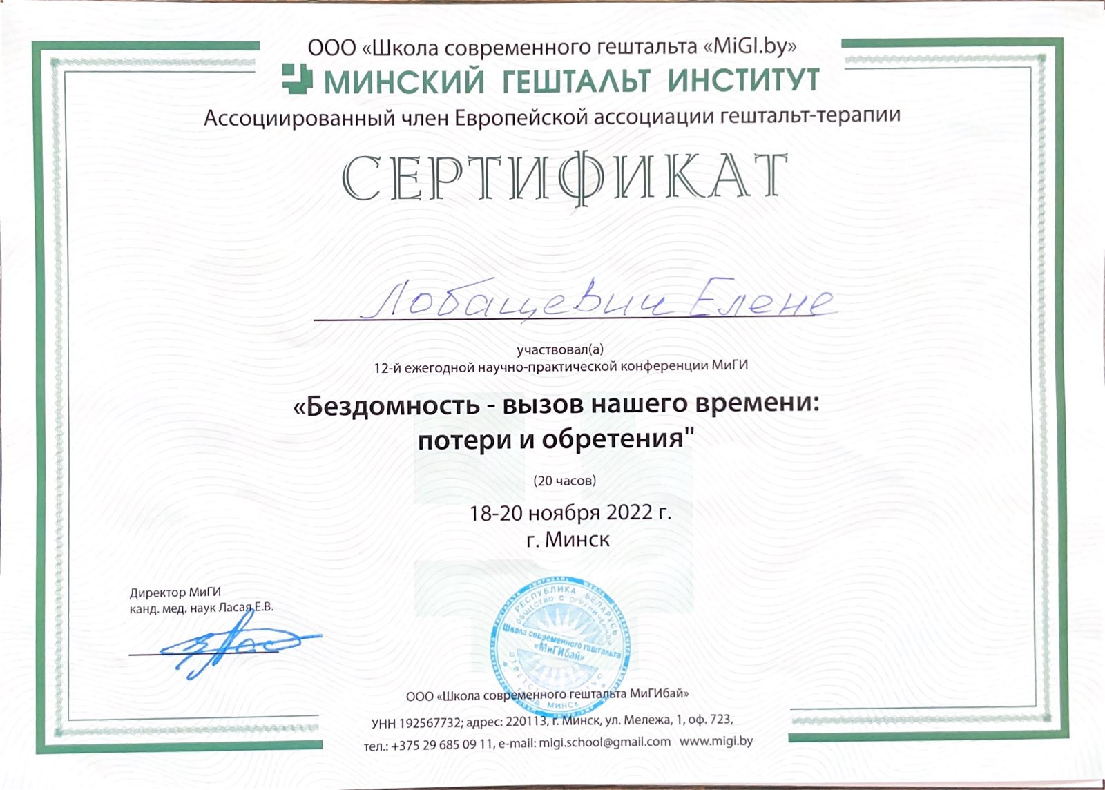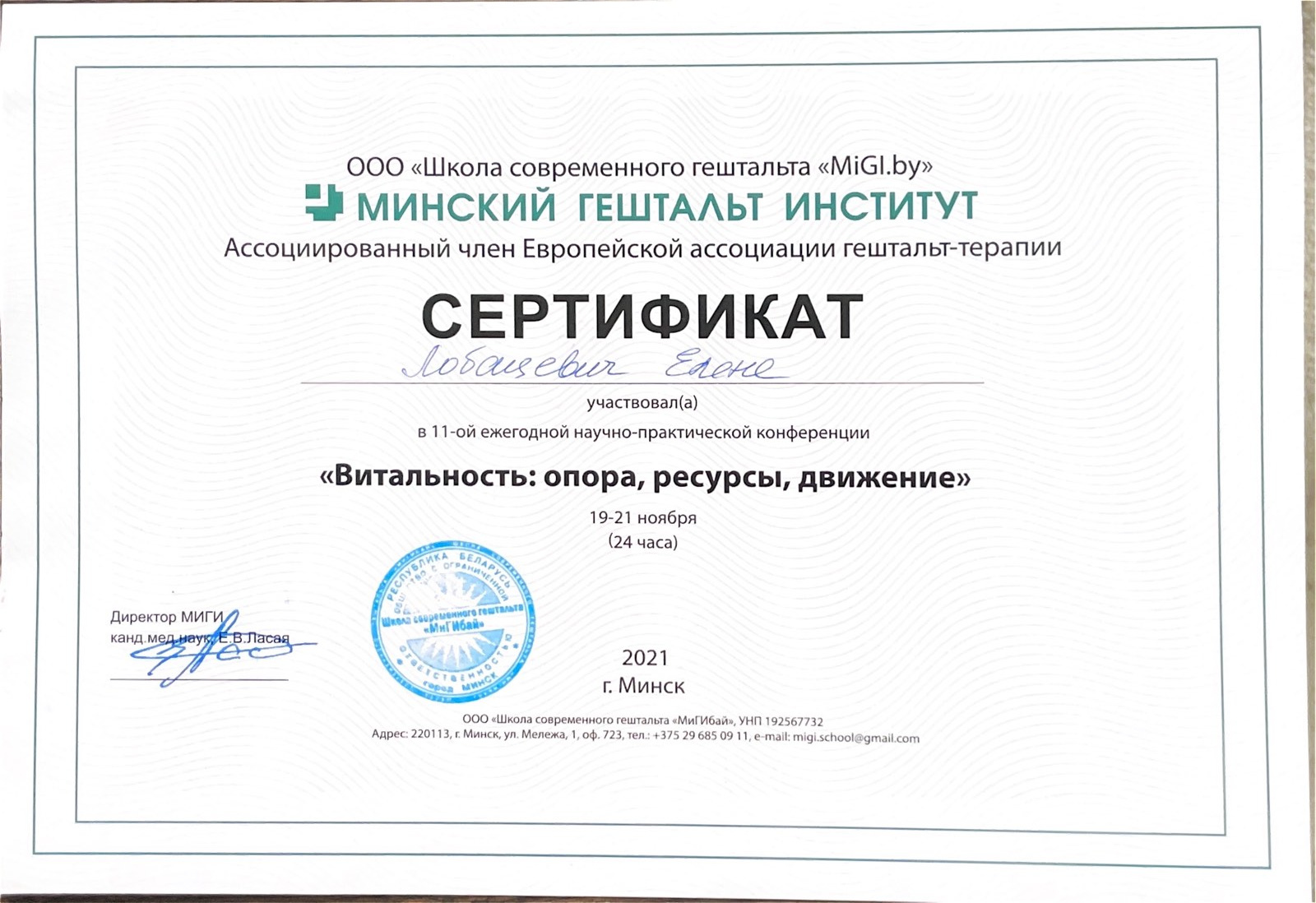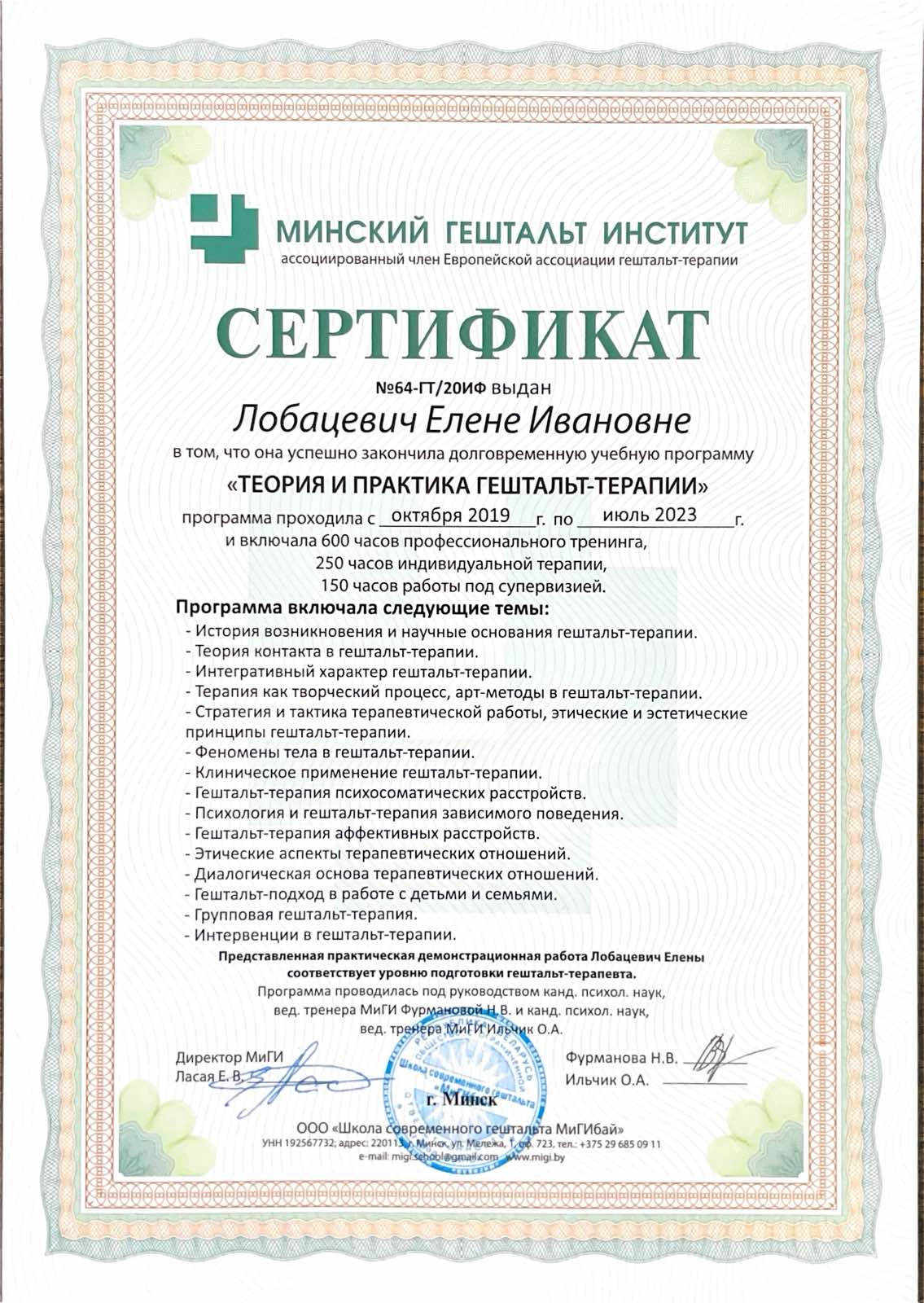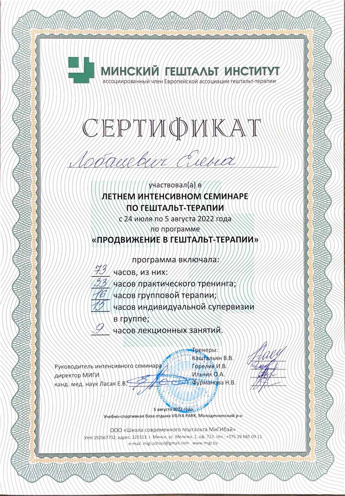 Хочу написать отзыв о психотерапевте от Бога Елене Лобацевич, у которой я проходила сеансы и которая всегда помогает советом, если он требуется. Елена помогает взглянуть на мир, мои проблемы, людей и мое отражение в зеркале иными глазами. Она очень чуткий, но что более важно - человек, который действительно знает свое дело, особенно что касается отношений между людьми. После бесед с Еленой чувствую небывалую уверенность в себе, появилась энергия решать проблемы, а не просто тревожится о них. Огромное спасибо!