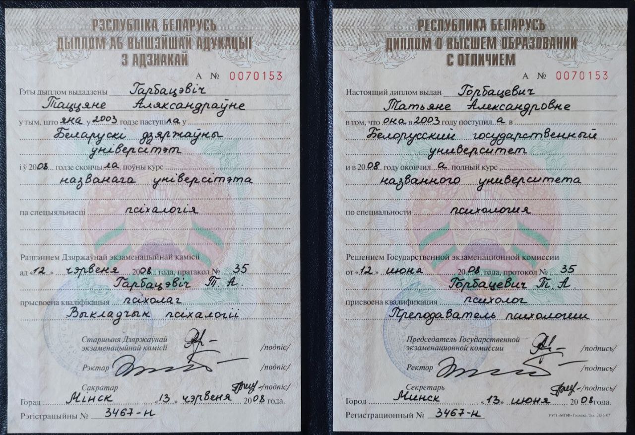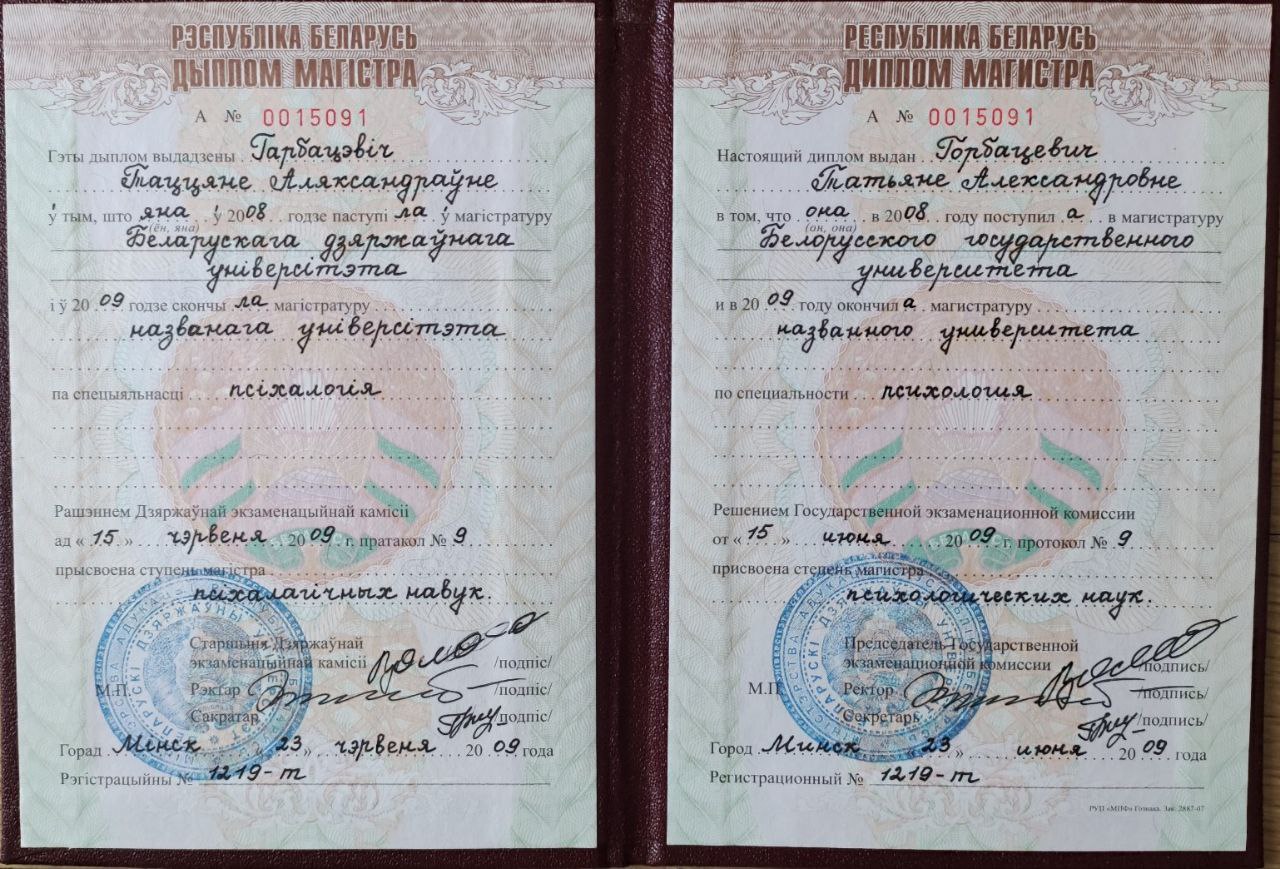 Психология для меня не только профессия, но и образ жизни, в который я погружаюсь с каждым годом всё глубже. Мой путь в этой сфере начался в 2008 году, когда я окончила факультет философии и социальных наук БГУ. Начала работать в психологической службе университета, где занималась консультированием, организацией групповых занятий и диагностикой.