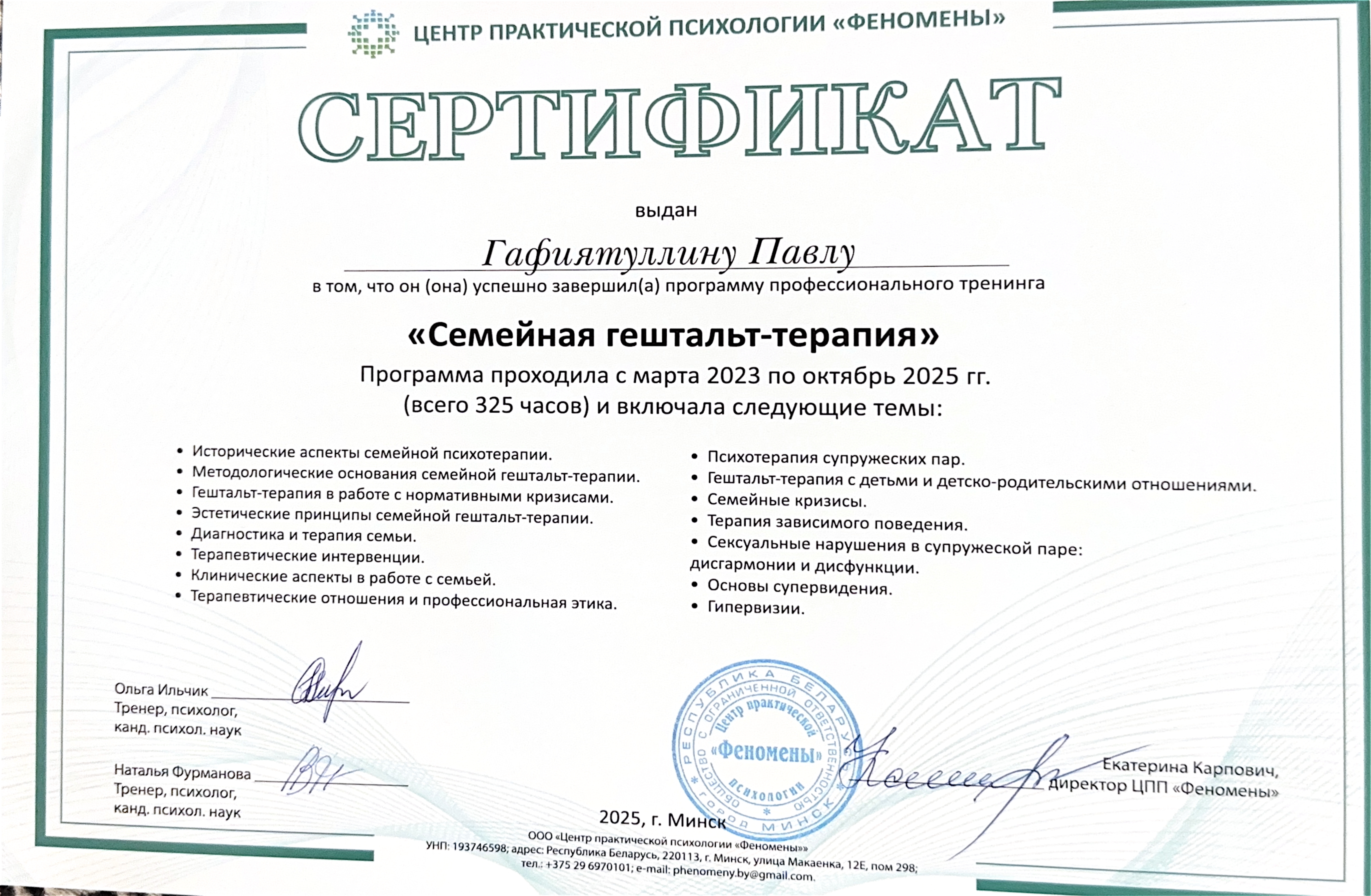 Дипломы и сертификаты
