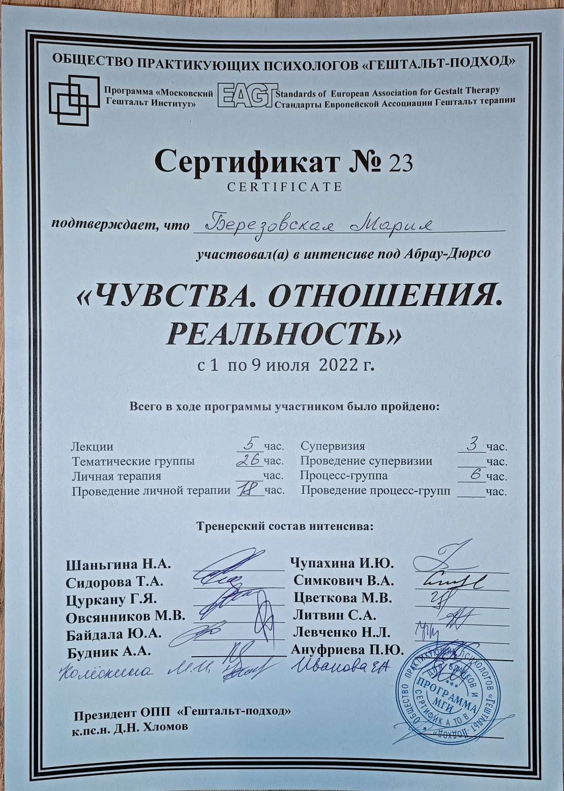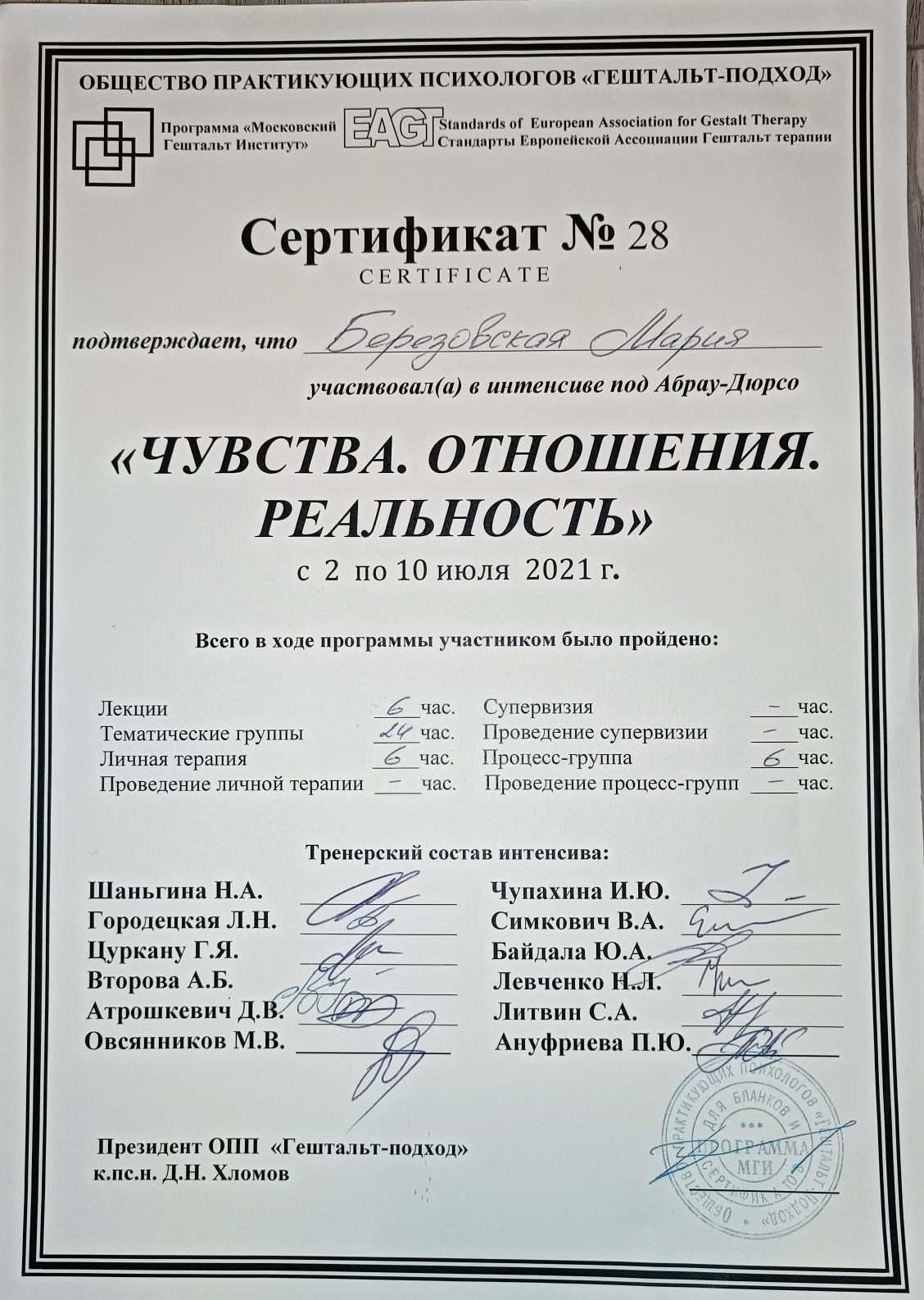 Перед первым сеансом очень волновалась, было страшно. Сейчас спустя время и 8 сеансов я их с нетерпением жду. Я чувствую поддержку и понимаю, что со мной все в порядке. Мария помогает мне разобраться в вещах, которые меня волнуют, будь то детство или актуальные проблемы в настоящем. Я понемногу разбираюсь с тем что я чувствую и что я с этим могу делать. С Марией мне уже легко общаться, могу делиться личным и не боятся. Очень рада, что начала заниматься. И буду продолжать.