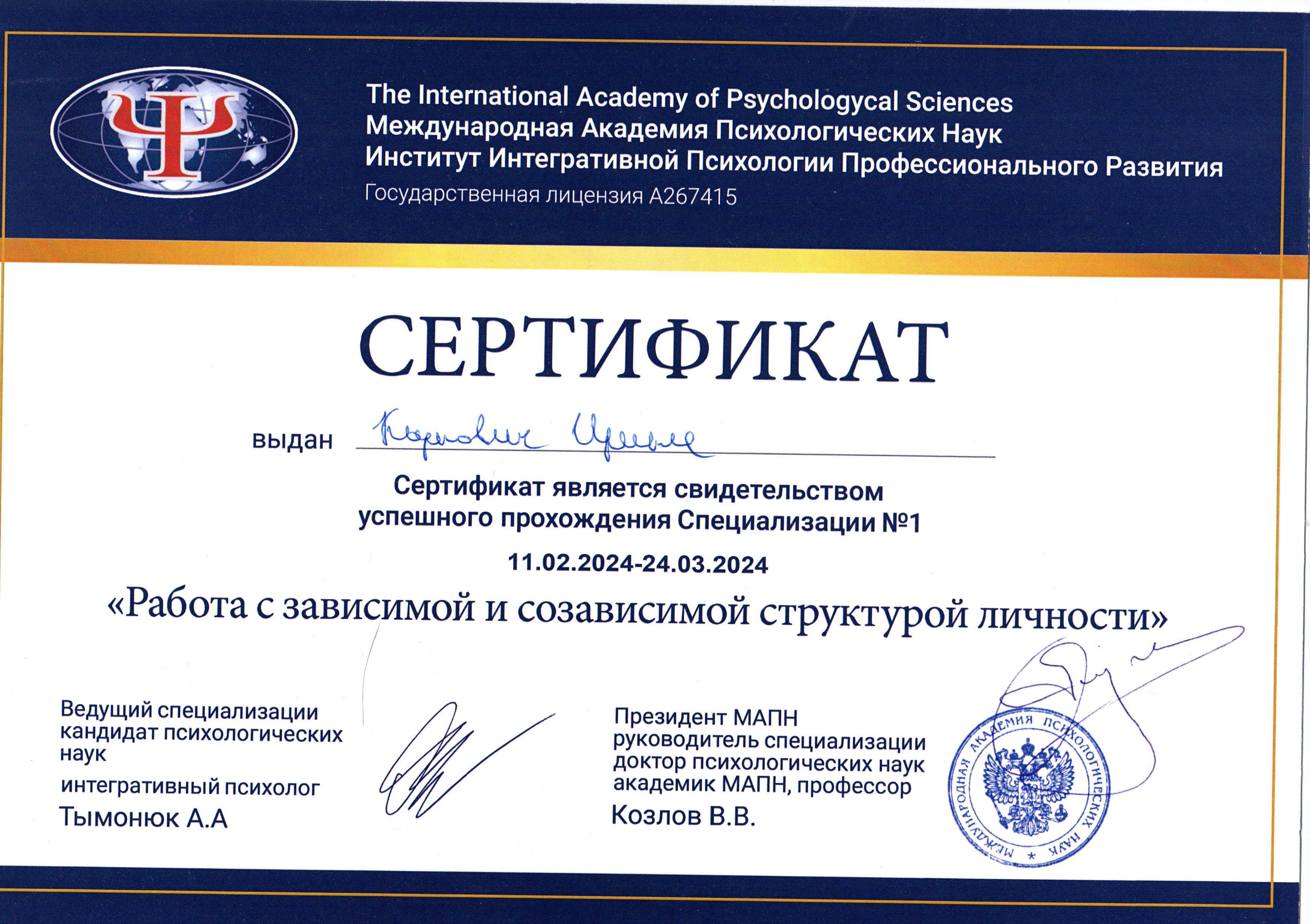 Я пришла к Вам в работу в тот момент времени, когда не то что опускались руки, но они уже и не поднимались. Полный тупик и крах. Маленькими, кропотливыми, но уверенными шагами Вы помогали мне идти, учили заново это делать. Я доверилась Вам и не ошиблась. Вы чуткий, слышащий и понимающий психолог, который действительно помогает мне. На сессии я чувствую себя полностью в безопасности и комфорте, что помогает мне раскрываться и работать глубже со своими болячками. Я вижу и чувствую результат работы с Вами. Вы помогли мне самой приблизиться к себе и начать себя слышать и понимать. Я безумно благодарна Вам за Вашу работу.