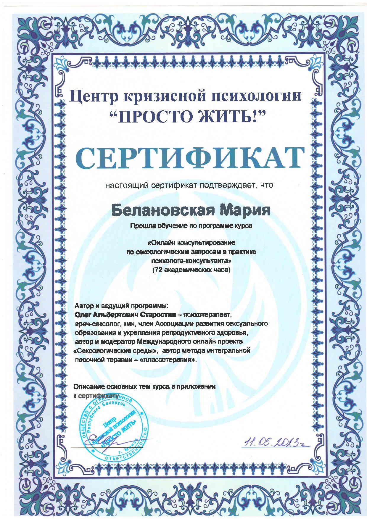 Спасибо сервису консультаций talk4life.online и Марии Белановской за организацию тренинга "Pro отношения". В доверительной и теплой атмосфере, при взаимодействии с другими участниками группы и опытным специалистом мне удалось открыть для себя ряд причин, лежащей в основе трудностей в моей семье и в личной жизни. Результаты занятий были для меня впечатляющей неожиданностью. Рассчитываю на продолжение участия в онлайн тренингах