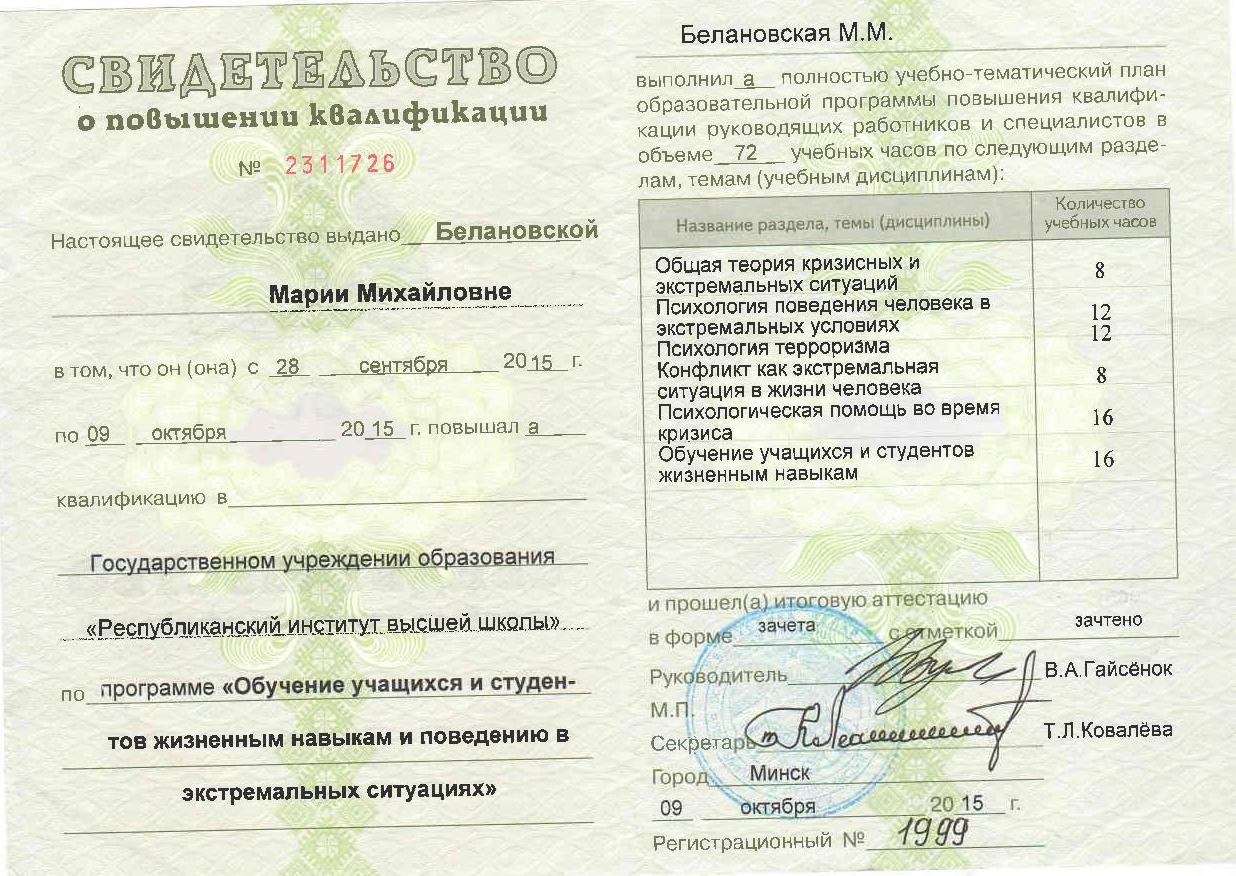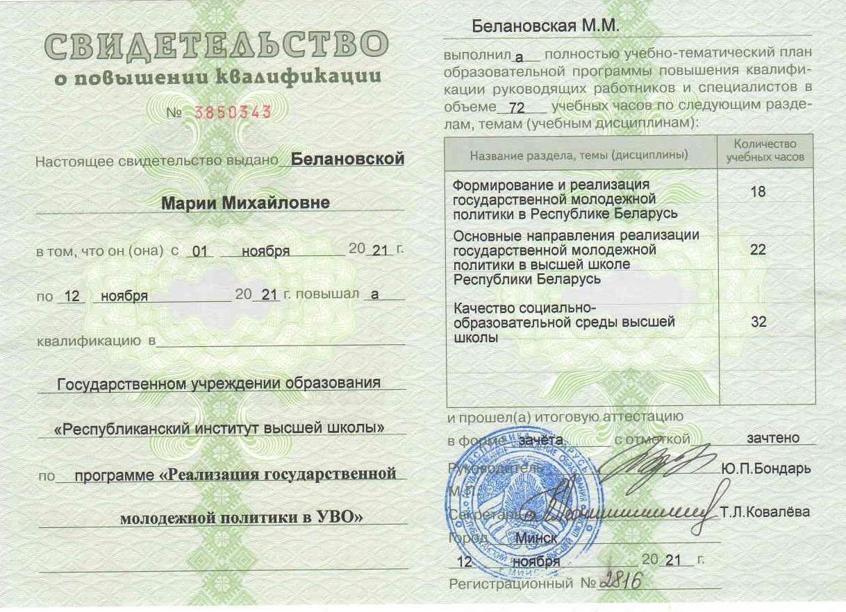 Эксперт в подготовке лидерского потенциала страны различных молодежных организаций Республики Беларусь (волонтеров, скаутов, председателей факультетов университетов и т.п.)