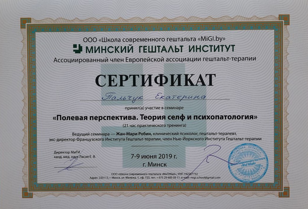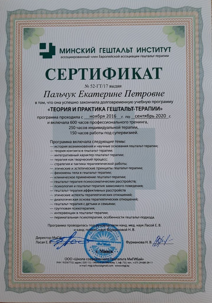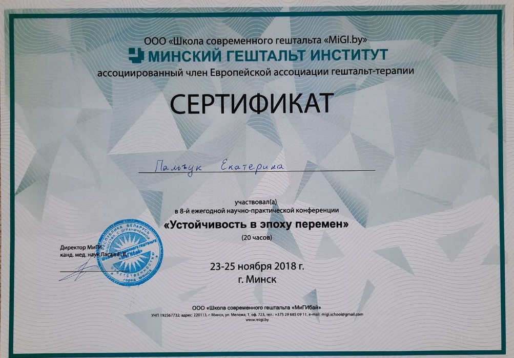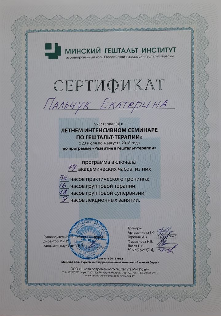 Выражаю Екатерине большую благодарность за профессионализм, чуткость, вдумчивость, внимательность к деталям, умение слушать и слышать. В процессе терапии чувствую рост и ясность. Спасибо за человеческую теплоту и острый ум.